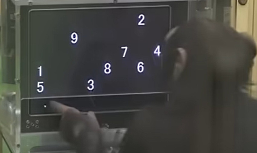 Ayumu a Kiotói Egyetem Főemlőskutató Intézetében él, ahol szabadon besétálhat a telefonfülkéhez hasonló, számítógéppel ellátott kis házikók valamelyikébe, hogy játékos feladatokat oldjon meg. A kérdéses memóriajátékban – amely ezen a videón látható – a másodperc tört részéig villannak fel számok 1-től 9-ig, a képernyőn véletlenszerűen elosztva, majd fehér négyzetek jelennek meg a helyükön. A feladat: visszaemlékezni a mögöttük rejlő számokra és azok növekvő sorrendjében megérinteni a négyzeteket. Aki kíváncsi a feladatra, ITT ki is próbálhatja.