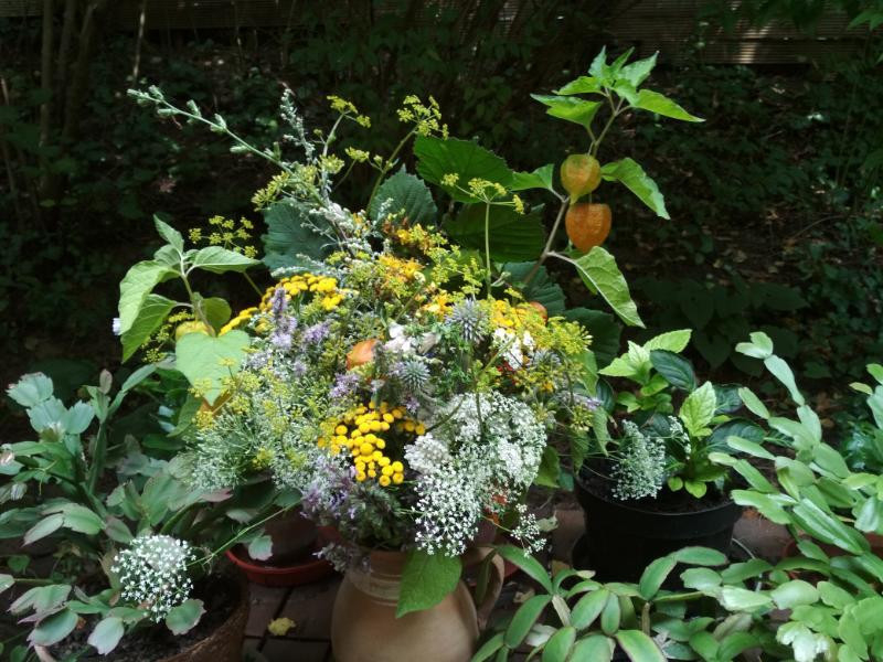 Érdekes, hogy ezeknek az augusztusban pompázó gyógynövényeknek többnyire a lombjuk is illatos, és szedés, csokorkötés közben különösen erősen érezhető az illóolajok jellegzetes kipárolgása. A fehér üröm, a cickafark aromás, kesernyés, a menták üdítő, édeskés illatúak, az orbáncfű virága eldörzsölve pirosan megfesti az ujjainkat, az apróbojtorján termései a hajunkba ragadva fogva tartanak, ha óvatlanul lehajolunk az utolsó virágokért, a szamárkenyérnek pedig még a levele is szúrós. Talán még arra is ráeszmélünk gyűjtögetés, keresgélés közben, hogy milyen mértékben szegényednek körülöttünk ezek az élőhelyek, a patakpartok, legelők, kaszálók... Sokszor csak egy keskeny sávban szorulnak meg a virágok az utak mentén, vagy meredek rézsűkön, amit a gépi kaszálás kikerül. Ezért aztán a saját kertünkben is nyújthatunk nekik menedéket, hiszen a füzény, a cickafark, az orbáncfű, a szurokfű, a varádicskóró már csak a szépsége miatt is megérdemli a gondoskodást.