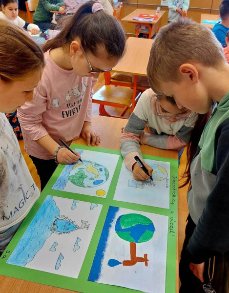 Az egész hét a teremtésvédelem jegyében telt az alsó tagozaton. Évfolyamokonként különböző programokon vettek részt a tanulók. Matematikai játékos feladatokat oldottak meg, gyűjtőmunkát végeztek a vízparti élővilágról, megismerkedtek a vízzel való takarékoskodás módjairól. Totókat, rejtvényeket oldottak meg, rajzokat és plakátokat készítettek.