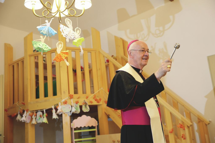 Szarvas Péter plébános az eseményen úgy fogalmazott, az egykori plébániaépületből kialakított óvodában szeptember óta jelen van a vidámság, a gyermekek mosolya, s ez a tisztaszívűség az, amiről Jézus is beszélt, mondván: „ilyeneké a mennyek országa”. Háláját fejezte ki, hogy nehézségek árán is, de elkészült a beruházás, melynél a korábbi plébániaépületet gondolta tovább a tervező, Csehák Fanni.