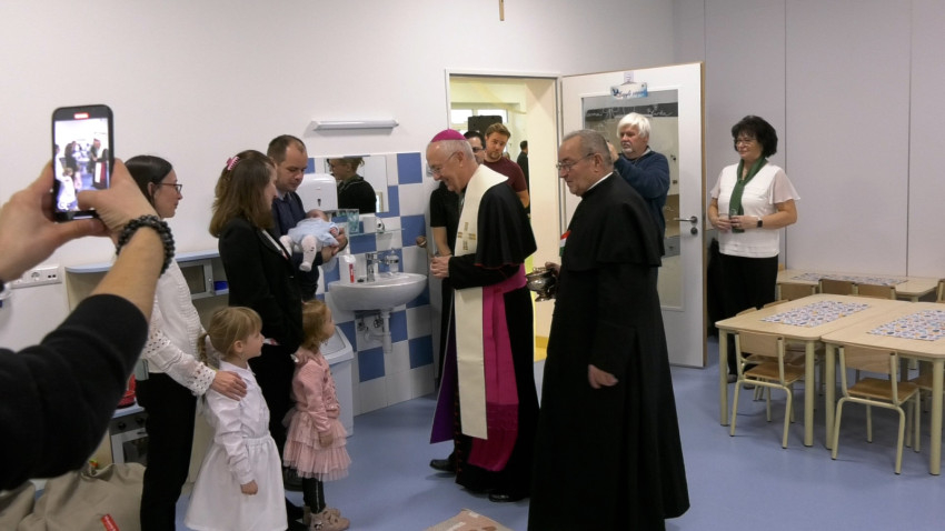 Michinger Ferenc plébános arról beszélt: örömet jelent, hogy a plébánia mellett már nemcsak templom és a karitászház, hanem óvoda is működik a településen. „A templomban felfedezhetjük Istent, a Karitásznál a szegényekben megláthatjuk Jézust, az óvodában, a gyerekek tisztaságából pedig tanulhatunk, hiszen ilyeneké a mennyek országa, ahogy Jézus mondja. Erőt meríthetünk az óvodások mosolyából a mindennapokra” – mondta a plébános.