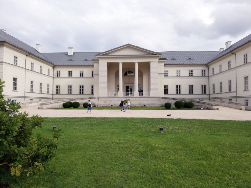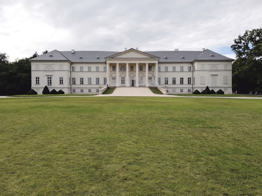 A kastély kiemelkedő jelentőségű, hiszen hazánk egyik legkorábbi klasszicista műemléke. Azok közé a ritka épületek közé tartozik, amelyeknek nem egy, hanem mindjárt két homlokzatuk is van. A parkoló felől megközelítve a kastély a kevésbé díszes homlokzatát mutatja: itt két dór oszlop tartja a timpanont, amely belül díszítetlen. A bejárathoz kétoldalt rámpán keresztül lehetett felhajtani lovaskocsival. A túloldalon már nagyvonalúbb a homlokzat, itt hat oszlopon nyugszik a szintén díszítetlen timpanon. Kétoldalt nincsenek felhajtók, a portikusz alatti főbejárathoz egy széles gyalogos rámpa vezet fel, így közelíthetik meg a bejáratot például a kerti sétából visszatérők. Az egész épület nagyon hasonlít a budapesti Nemzeti Múzeumra, amit szintén Pollack Mihály tervezett, akárcsak ezt a kastélyt, amely a fővárosi múzeum afféle előtanulmányaként is felfogható. A Nemzeti Múzeum épülete már kiforrottabb, díszesebb, homlokzatát nem dór, hanem korinthusi oszlopok díszítik, és a timpanonja nem üres, szobrok kaptak helyet benne, középen Pannónia alakjával.