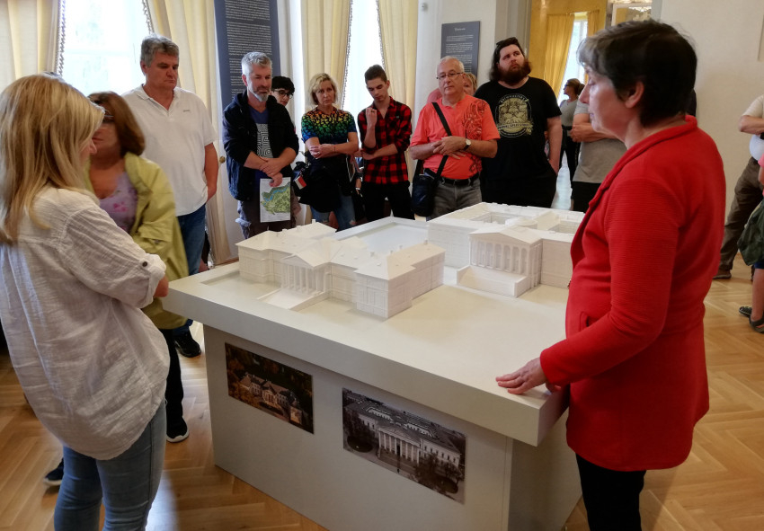 A klasszicista építészetet bemutató teremben ezt olvashatjuk a 18. század elején újraéledő stílusirányzatról: „A klasszicizmus – vagy ahogyan korábban nevezték, a neoklasszicizmus – sem egyértelmű stílusfogalom. Elsősorban azt jelenti – és ezt az értelmét minden interpretáció megtartotta –, hogy az antik építészet elemeit, főleg az oszloprendeket alkalmazza tagoló- és díszítőelemként. Jelenti egyben azt is, ami az antik építészetre is jellemző volt: a kiegyensúlyozott nyugalomnak, a gondosan mérlegelt arányoknak az uralmát, tehát valami harmonikus egyensúlyt, ami hiányzott a megelőző korszak, a barokk mozgalmas, fantáziát és szenvedélyt felébresztő jellegéből.” Zádor Anna művészettörténésznél kevesen fogalmazták meg jobban a klasszicista stílus lényegét.