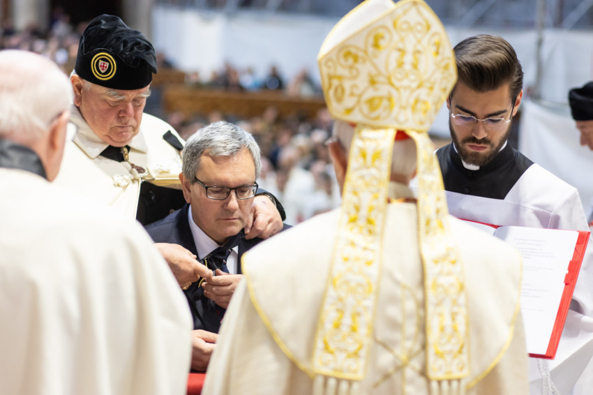 Ezeket a szempontokat azért szeretném hangsúlyozni, mert a ti lovaggá avatásotok nem az Egyházon kívül, hanem azon belül történik, és a mai ünnepélyes szertartás ennek a csúcspontja. Szeretném ezért, ha ez a vízió a ti identitásotoknak részévé válna. Hiszen gyakran feltehetnek nekünk olyan kérdéseket, mint például: Kik vagytok ti? Mi értelme ma egy ilyen rendnek? Nem vagytok anakronisztikusak? Sőt, fel kell tennem magamnak is a kérdést: Ki is vagyok én mint dáma avagy lovag? Miért is vagyok tagja egy olyan rendnek, amelyet a jeruzsálemi Szent Sírról neveztek el?