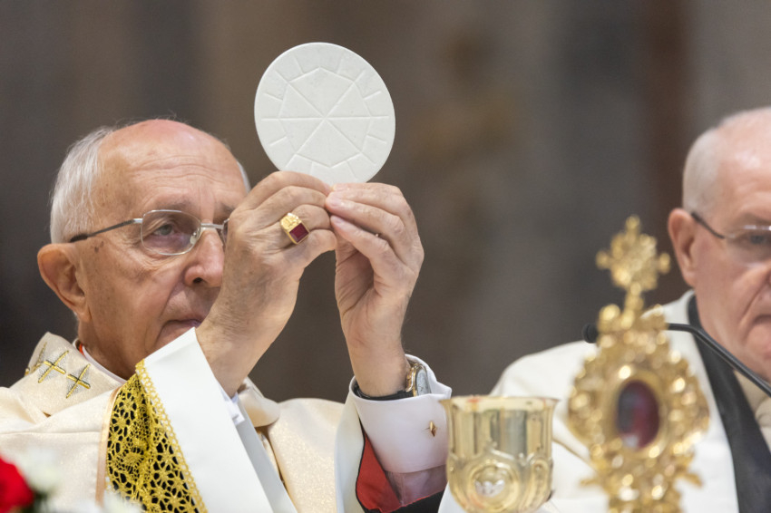 A lovagavatást követő hálaadó szentmisét Fernando Filoni bíboros, a rend nagymestere, a Népek Evangelizációjának Kongregációja korábbi prefektusa latin nyelven celebrálta.