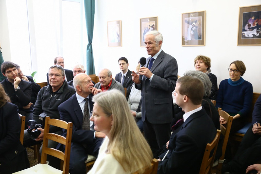 A beszélgetésen elsőként Jelenits István piarista szerzetes-tanár szólalt fel, aki a Mária Rádióban évek óta az Evangéliumi magyarázat című műsorban értelmezi röviden az adott nap szentírási szövegeit. Amint megosztotta a hallgatósággal, a kezdetben három évre eltervezett közös munka észrevétlenül tartott tovább egészen mostanáig, amely során ő maga is exegetikai igényességel próbál meg újra és újra közelíteni a Szentíráshoz. Ebben valódi lelkipásztori feladatot lát, hiszen a rádión keresztül egy sajátos keresztény közösség alakul, főleg olyanokból, akik magányosok, idősek, akik már nem tudnak közösségbe vagy szentmisére járni, vagy akik úton vannak, és az autójukban hallgatják az imádságokat. Ily módon az egyház közössége is szélesedik, és más, talán láthatatlanabb módon kapcsolódnak be az egyházi életbe.