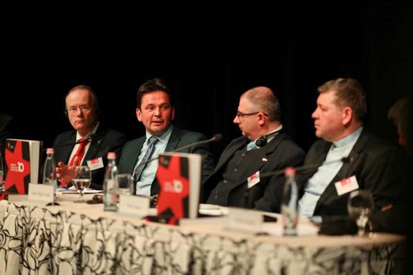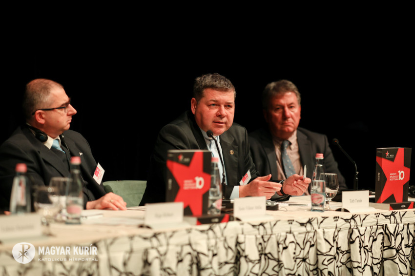 A Küzdelem a lelkekért című panelbeszélgetése résztvevői – Tóth Tamás egyháztörténész, az MKPK titkára; Horváth Gergely Krisztián, a HUN-REN Bölcsészettudományi Kutatóközpont és a NEB Vidéktörténeti Témacsoportjának vezetője; Łukasz Kamiński, a lengyel Ossoliński Nemzeti Intézet igazgatója; Rigó Róbert, a Károli Gáspár Református Egyetem és a NEB Hivatalának munkatársa; Soós Viktor Attila, a NEB tagja – azt járták körbe, milyen jellemzői voltak a vallásüldözésnek a kommunista diktatúra évtizedeiben. „Ma, hamvazószerdán egy szomorú dologról, az egyházüldözésről, az egyházak megtöréséről fogunk megemlékezni” – kezdte a beszélgetést a moderátor, Prőhle Gergely, a Nemzeti Közszolgálati Egyetem Stratégiai Tanulmányok Intézete igazgatója. Łukasz Kamiński azt emelte ki, hogy Lengyelországban már a világháború végén, de leginkább 1948-tól elindult az Egyház háttérbe szorítása. Az egyházi vezetők ugyanakkor mindvégig folytattak valamiféle egyeztetést a kommunista vezetéssel. A hetvenes évekre a Katolikus Egyháznak fontos politikai, közéleti szerepe lett, a nyolcvanas évtizedre pedig már az állami ellenőrzés intenzitása is alábbhagyott.