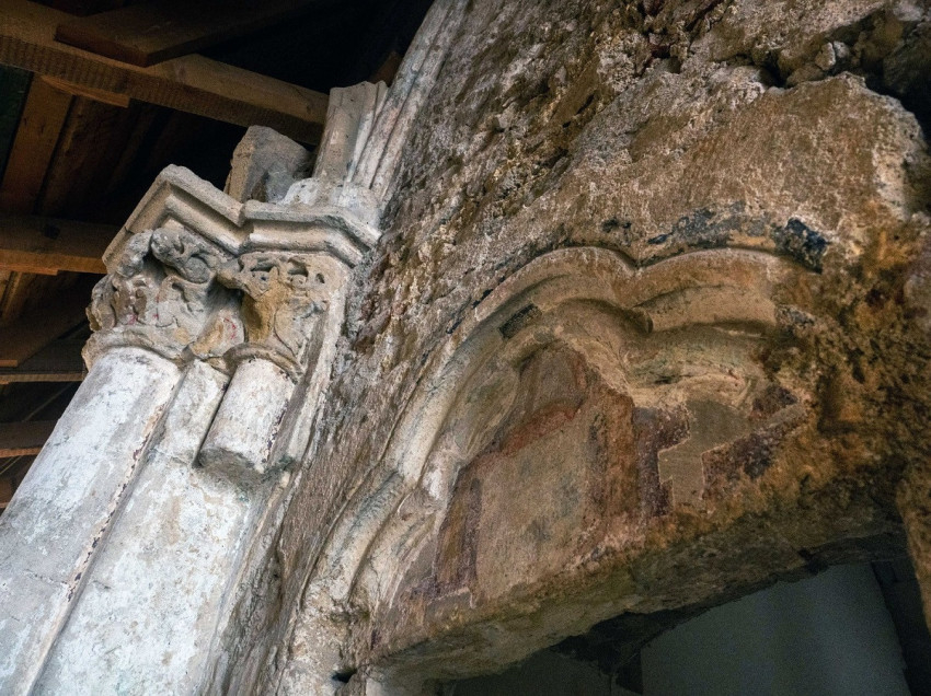 Az alsó kápolna északi falán még régebbi alkotások láthatók: az apostolokat ábrázoló, bizánci hatást mutató falfestések egykorúak az épülettel, vagyis több mint 800 évesek.