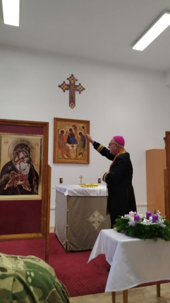 A megáldást követően Berta Tibor püspök meggyújtotta az adventi koszorú első gyertyáját, majd záróáldásában hangsúlyozta: az advent a kezdethez való visszatérés és a béke keresésének ideje. Mint fogalmazott, az imaterem a laktanya katonái és honvédelmi alkalmazottai számára helyet biztosít az elcsendesedésre és a közösségi áhítatokra. A püspök arra kérte a lelkészeket: mindent tegyenek meg azért, hogy az imaterem-kápolna „beimádkozott” hely legyen.