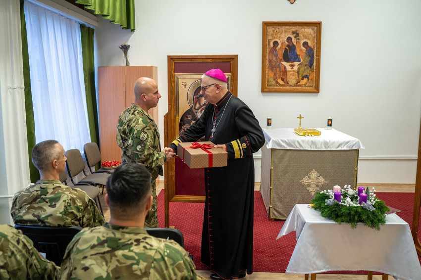 „A karácsony titka, hogy a Mennyei Atya egyszülött Fia, Jézus Krisztus emberré lett, és életével megmutatta, hogyan és miként kell egymás felé fordulnunk” – mondta a katonai ordinárius. Beszédében kiemelte, hogy az első apostoli útján Törökországba és Libanonba látogató XIV. Leó pápa cselekedetei és megnyilatkozásai is a békesség keresésére és a testvéri együttműködésre irányították a figyelmet. „A Szentatya is arra emlékeztet bennünket, hogy a béke mindig két ember között kezdődik – és sajnos a háború is. Ezért fontos, hogy a közösségeinkben egymást tisztelve és segítve éljünk. Ehhez, ahogy Leó pápa mondta: »a szív megtérése« kell” – magyarázta a püspök.