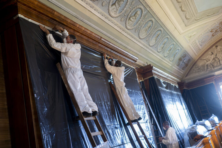 A felületeket négyzetcentiméterről négyzetcentiméterre kenték le kétféle – megelőző és fertőzéseket megszüntető – hatóanyagot tartalmazó védőszerrel. Nagyon pontosan kiszámolt vegyszermennyiségeket kellett felhordani a felületekre. A történelmi helyszín adottságai miatt a munka különösen nehéz volt. Eleve fokozottan ügyelni kellett az óriás nejlonbuborékokba csomagolt könyvekre. A polcok jó része karzatról, létráról elérhető csak, ami tovább nehezítette a munkát. A kétszáz éves bútorok felületkezelése, lakkozása különösen érzékeny az oldószerekre – itt nem lehet hibázni.
