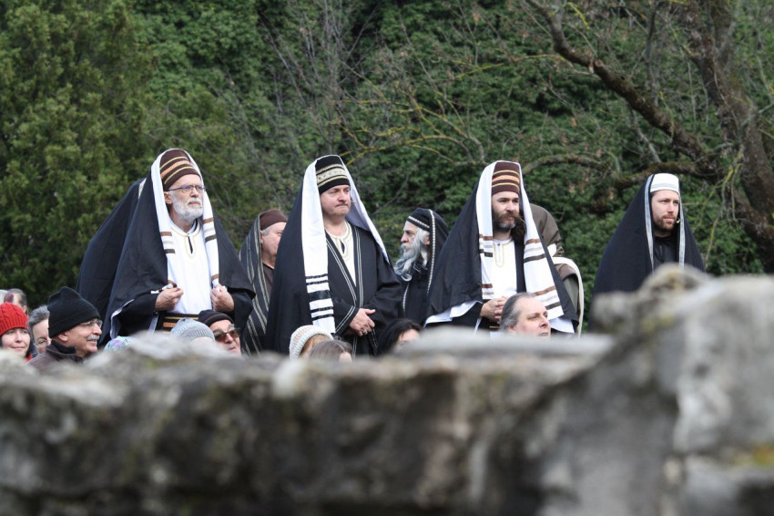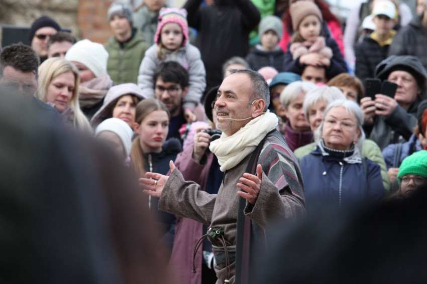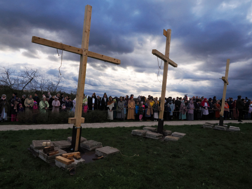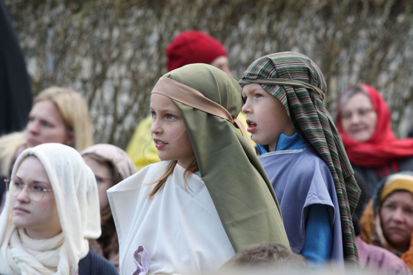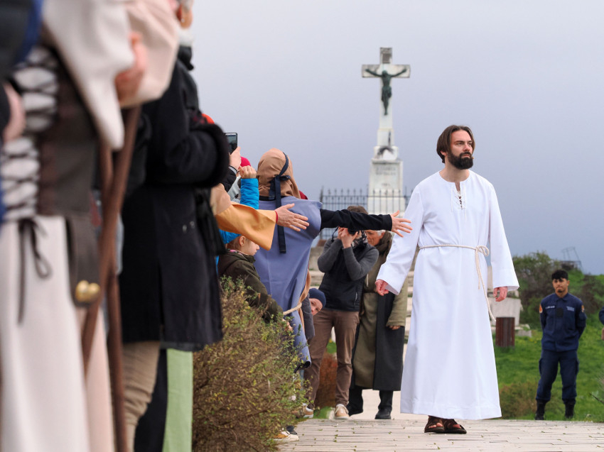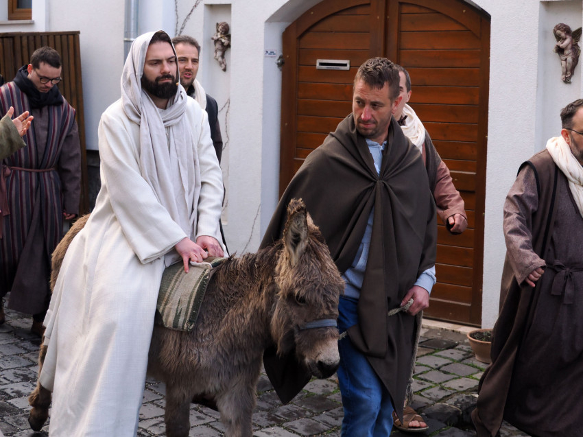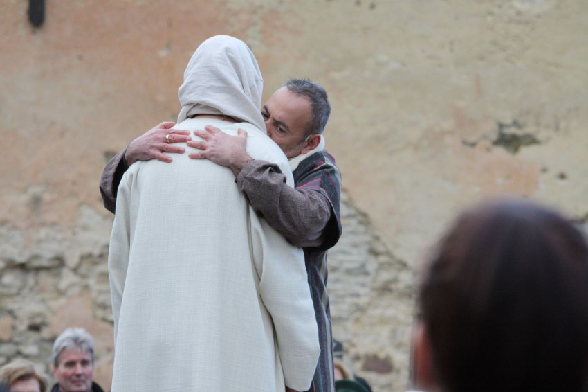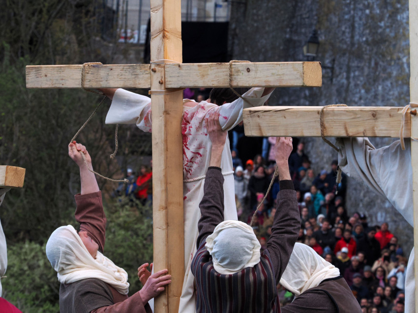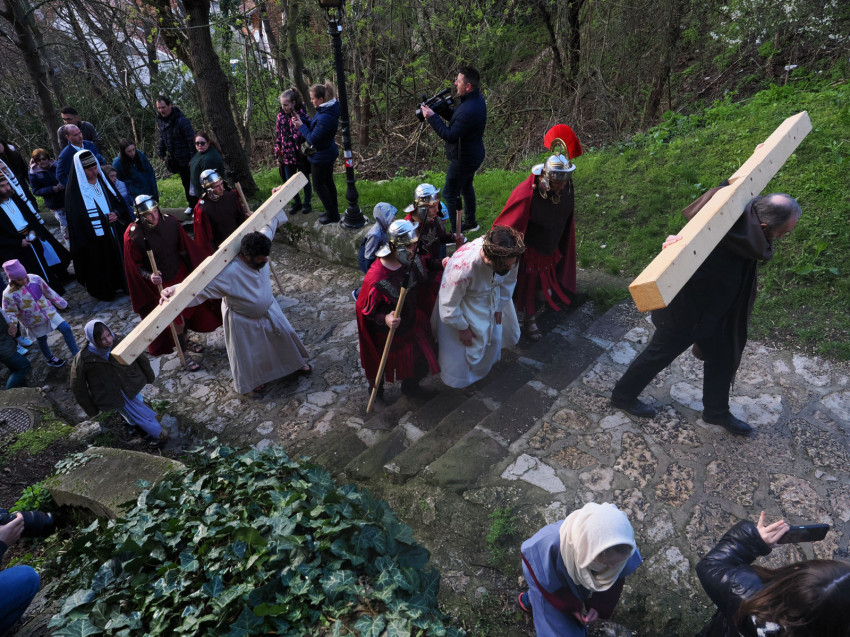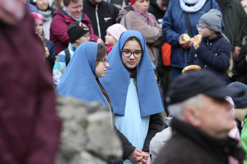 Jézus szenvedéstörténete Kiss György rendezésében elevenedett meg. A megrendítő misztériumjátékot több mint ezer néző követte a Margit-romoktól a rózsakerten és a Patak téren át a Benedek-hegyig, akiknek kedvét a hétvégi erőteljes lehűlés, a jégdara és a feltámadó szél sem vette el.