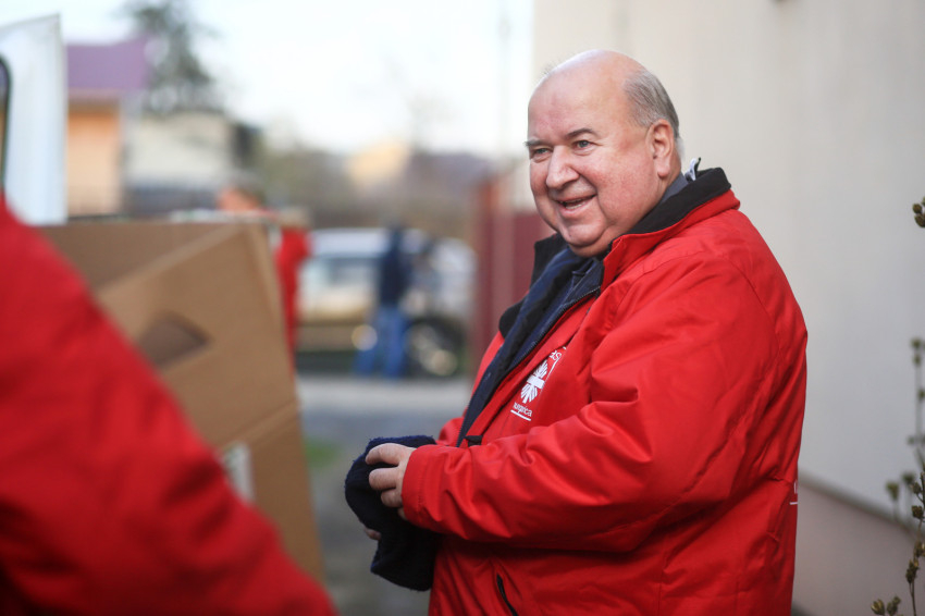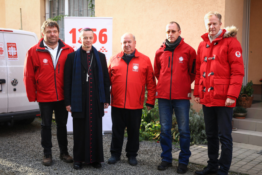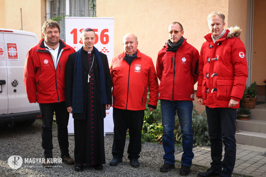 Az élelmiszerek és higiéniai termékek mellett ezúttal fatüzelésű kályha, fabrikett, lámpák és generátor volt a raktérben. A szállítmányt a munkácsi Szent Márton Karitász fogadja. Meglepetés, hogy Lucsok Miklós munkácsi püspök eljött az átadásra. Fehér Ferenc igazgató köszönti az érkezőket. Köztük van Écsy Gábor, a Katolikus Karitász országos igazgatója, Miroslav Dzurech, a Caritas Slovakia (SKCH) főtitkára és Pavol Vilček, a Szepesi Egyházmegyei Karitász igazgatója.