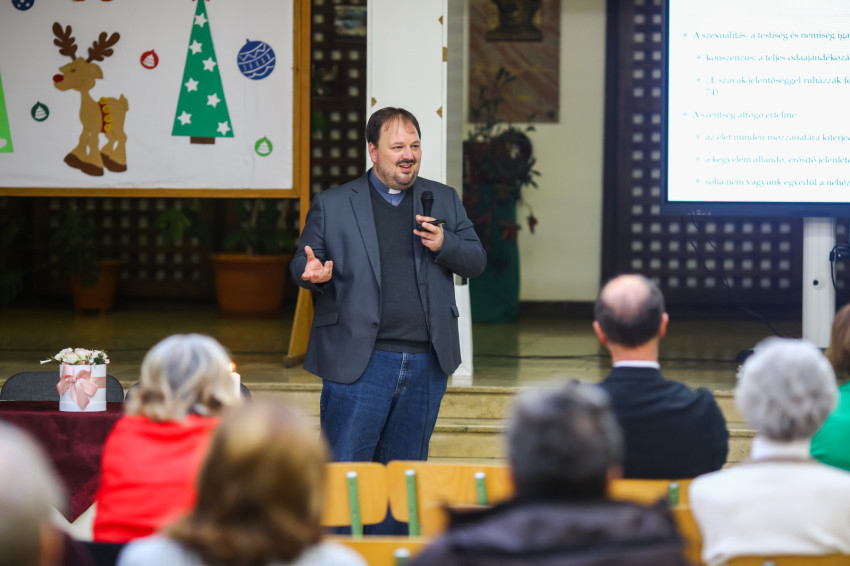 Török Csaba kitért arra, hogy a covid lehetőséget nyújtott arra, hogy amikor a templomi istentisztelettől el vagyunk zárva, megszülessen a családi istentisztelet gyakorlata. Az ebédlőasztalnál nem mondunk zsolozsmát, de más imádságot mondhatunk. Mivel a mai ember nem bírja a hiányt elfogadni, annak fájdalmával együtt élni, nem tudtunk a szentmise hiányával sem mit kezdeni. Online miséket és miseközvetítéseket tartottunk, de a szentség nem jön át a képernyőn. Egy ünnepeinkről szóló családpasztorációs könyvsorozat sokat segít abban, otthon hogyan élhetjük meg, hogy a család imádsága és az Egyház imádsága szerves egészet alkot.