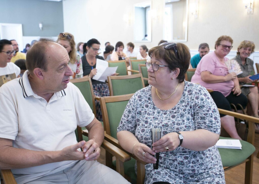 A továbbképzés második napján Palánki Ferenc debrecen-nyíregyházi megyéspüspök is találkozott a hitoktatókkal, és a reggeli zenés, imádságos áhítatot követően rövid elmélkedést tartott a napi evangélium alapján.