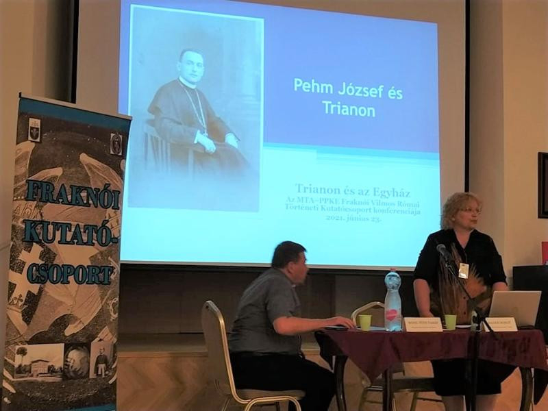 A Tóth Tamás egyháztörténész, a Magyar Katolikus Püspöki Konferencia (MKPK) titkára által moderált első szekció előadásainak sorát Balogh Margit, az ELKH BTK Történettudományi Intézet tudományos tanácsadója nyitotta meg Pehm Józsefnek – a későbbi Mindszenty József hercegprímásnak – Trianonnal kapcsolatos álláspontját ismertető előadásával. Kiválóan kirajzolódott a gyakorlati revizionista pap képe, aki az elcsatolások következményeit Zalában kuráciák, lelkipásztori körzetek létrehozásával igyekezett enyhíteni, vagy aki meggyóntatta, megáldoztatta és megáldotta 1938-ban a cseh megszállt terület felszabadítására induló zalaegerszegi rongyosokat.