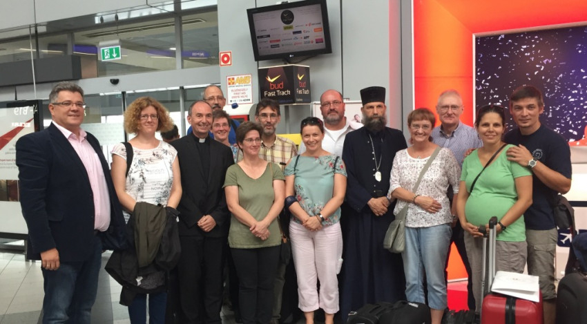 A magyar küldöttség tagjai elutazásuk előtt a ferihegyi repülőtéren