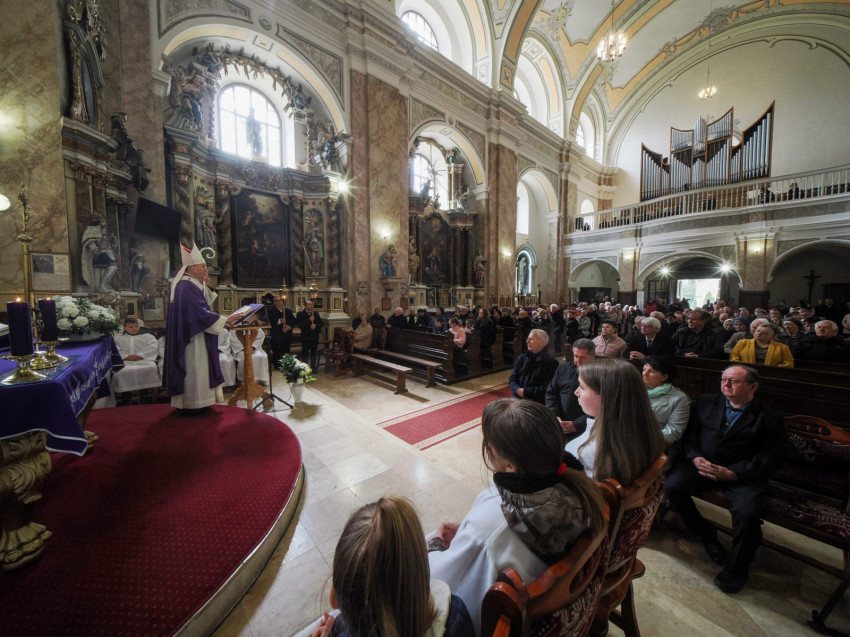 Nagyböjtben vagyunk. Egyházunk arra szólít, hogy tisztítsuk meg lelkünket, tegyünk rendet magunkban és magunk körül – hangsúlyozta szentbeszédében a főpásztor. – Ennek gyönyörű példája a megújult templombelső, hiszen a szépség és a tisztaság az ott lévőktől is megkívánja ugyanezt.