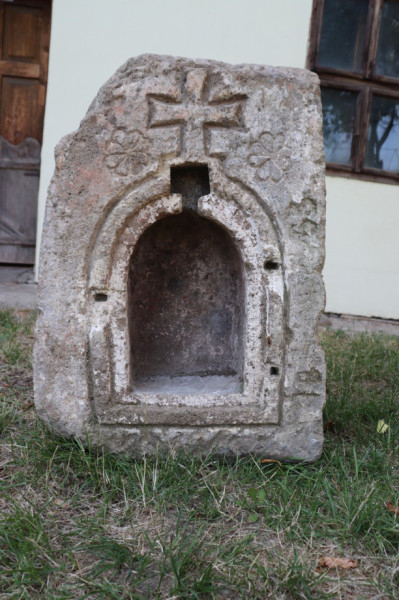 A kőfaragványokból sikerült kirakni egy újabb ajtókeretet is, és ez sokkal érdekesebbnek bizonyult az előzőnél, ugyanis olyan, úgynevezett szarvtagos ajtókeret szárait azonosította a művészettörténész, amelyek a román kori és kora gótikus építészetben ismert típushoz tartoznak, ám Erdély területéről egyelőre nem jeleztek ilyent, Máramarosban dokumentáltak eddig hasonlót. Úgyhogy ez a szarvtagos díszítmény az erdélyi régiségkincsbe Zetelakán keresztül kapta meg a belépőjét – fogalmazott Fehér János. Mint elmondta, ezek az ajtókeretek talán az első zetelaki templomnak (ennek viszont lehetett két fázisa is) lehettek a tartozékai, ugyanis a kőfaragványok közül ezek tekinthetők a legkorábbi daraboknak.