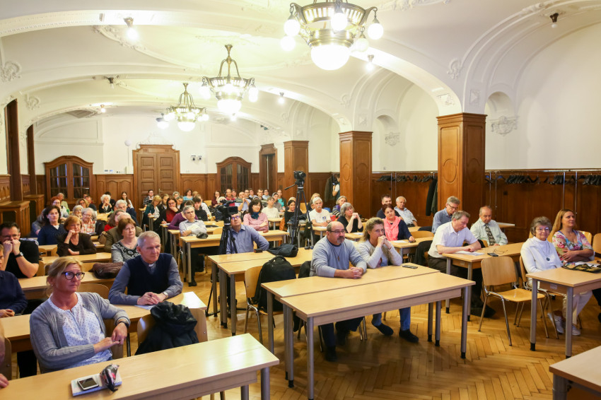 A rendszerint beszélgetős formában megtartott szabadegyetemi előadáson ezúttal betegség miatt nem tudott jelen lenni Kézdy Anikó pszichológus a Sapientia oktatója, a mostani témakifejtés egyik szakmai előkészítője.