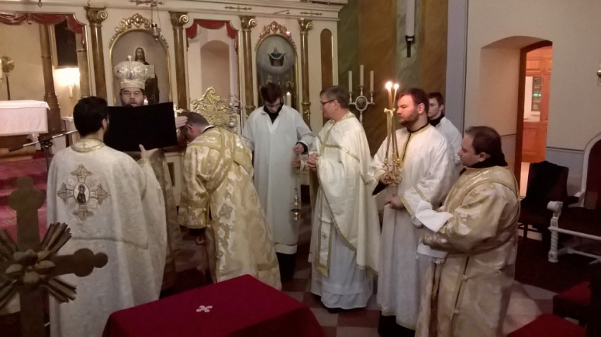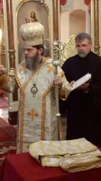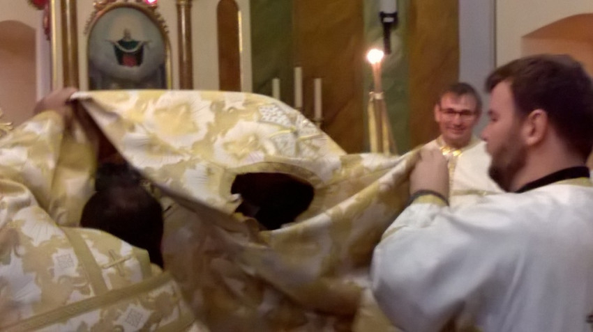 A szertartás a sztichárion (földig érő, ujjakkal ellátott ingszerű öltözék) és orárion (hosszú, keskeny, stólaszerű, többnyire keresztekkel ékesített, vállon átvetve viselt öltözet) megáldásával kezdődött. Ezek a ruhák a szolgálatban való készséget jelentik, jelképei annak, hogy viselőjük Isten kegyelmébe öltözve végzi az oltárszolgálatot.