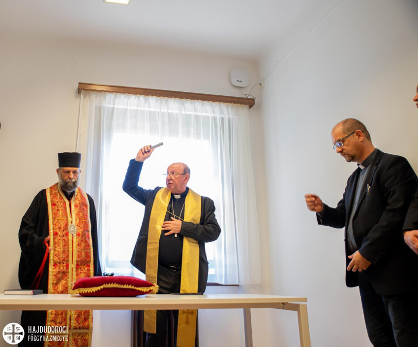 A közösségi pont jelképes kulcsának átvételét követően Kocsis Fülöp érsek-metropolita és Palánki Ferenc megyéspüspök megáldotta az ökumenikus imaszobát.