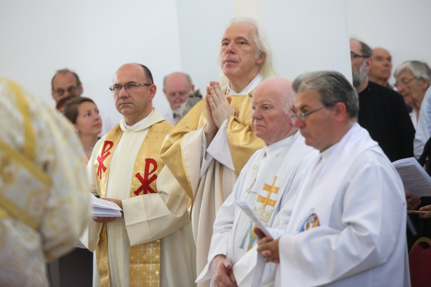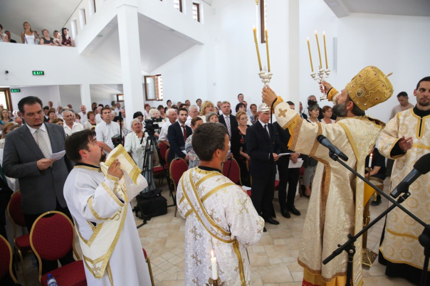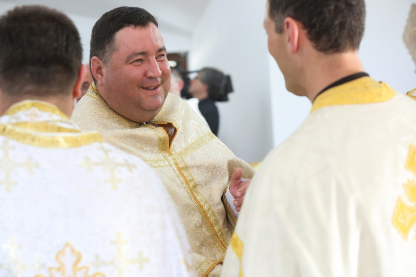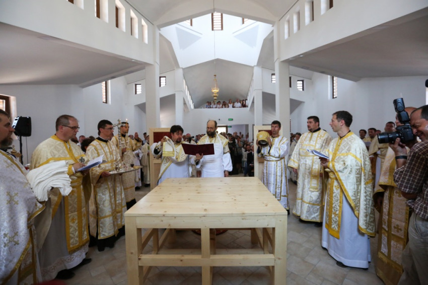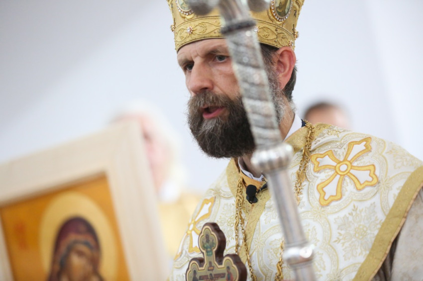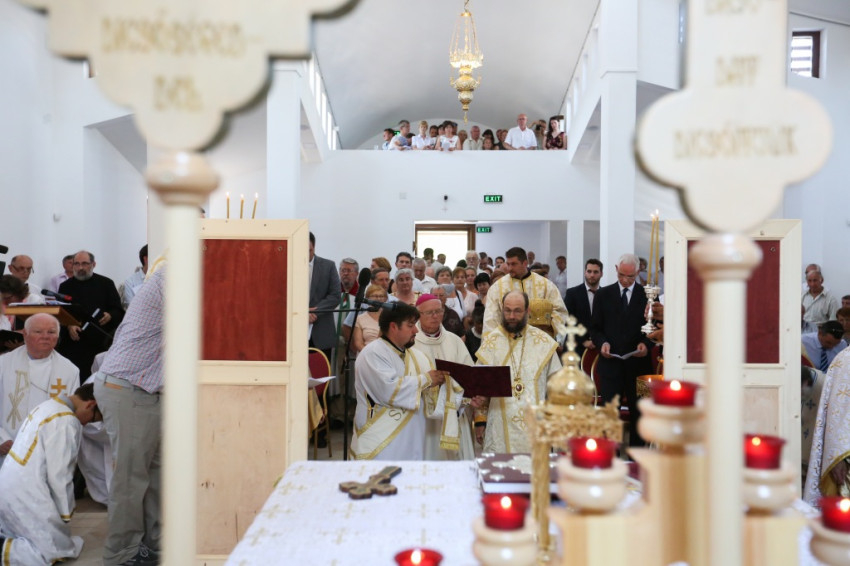 A metropolita prédikációjában a templom égi és földi mivoltáról elmélkedett. Felidézte kispapkori álmát, amelyben egy mennyből alászálló templomot látott, majd hangsúlyozta, hogy tudja, mennyi ember munkája, adománya, áldozathozatala tette lehetővé ennek a templomnak a megépítését, vagyis hogy nem a mennyből szállt alá. És mégis: ahhoz, hogy ne csak egy szép ház legyen, hogy szent hellyé váljon, isteni közreműködésre, a Szentlélek átalakító erejére van szükség. A Szentlélek ma leszáll erre az épületre és itt is marad: működni fog az emberi szívekben. A közösség élete nélkül a püspöki szentelés sem érne semmit. Nem lenne helyes, ha ezzel a látványos sikerrel csupán dicsekedni akarna a görögkatolikus egyház. Az igazi siker az lesz, ha ebben a templomban sokan otthonra lelnek az Isten közösségében. A templomépítés befejeződött, az egyház-, azaz közösségépítés folytatódik.