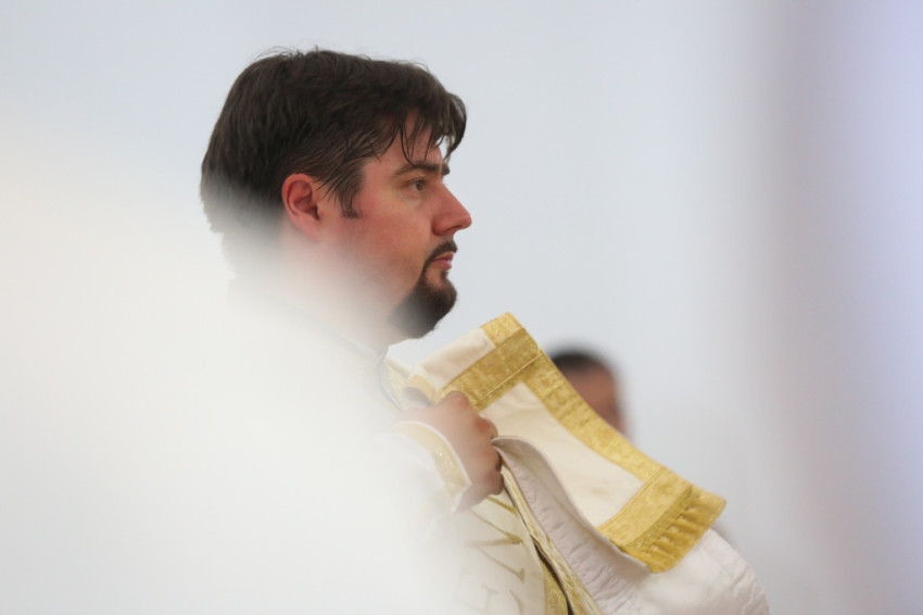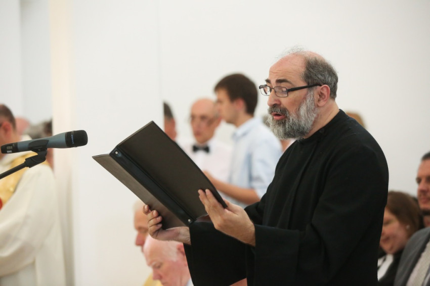 Balog Zoltán a templom elnevezéséről, Péter és Pál nevének jelentéséről elmélkedve kezdte beszédét. Péter neve kősziklát jelent, Pálé azt, hogy kicsi, második (Péter után), utolsó. Ez életünk két alapösszetevőjére utal: hogy ki akarunk kiemelkedni a többiek közül, de aztán meg kell tanulnunk kicsinek lenni. És megesik, hogy akkor vagyunk a legmélyebben, amikor a legmagasabban érezzük magunkat. A sziklának pedig porrá kell töretnie, hogy a termékenység alapja lehessen. Amikor gyenge vagyok, akkor vagyok a legerősebb, mint Pál apostol mondja, és ez a jó életprogram. Lehet, hogy éppen akkor vagyunk erősek, amikor mások kicsinek látnak bennünket. Így van ez Dunakeszin is. Kívülállók azt kérdezhetik, mit keres itt egy görögkatolikus templom. Templomnak ott kell épülnie, ahol hívek vannak. Ez térfoglalás, üres tér ugyanis nincsen. Ha a keresztények nem foglalnak teret, majd megteszik helyettük mások: az értéktelenség, a hamisítványok. Ha a térképre tekintünk, észre fogjuk venni az egybeesést: ugyanott van sok görögkatolikusok Magyarországon, ahol sok roma. És éppen a görögkatolikus egyház tesz a romákért, a gyermekvédelem, az idősek és leszakadók segítése terén a legtöbbet. Ez pedig templom nélkül nem megy. Az elmúlt hat évben a Kárpát-medencében ezertizennyolc templom újult meg és hatvan új épült. Micsoda lelki éhséget jelez ez! Maradjon is meg ez az éhség, mert a lelki megújuláshoz szükség van rá.