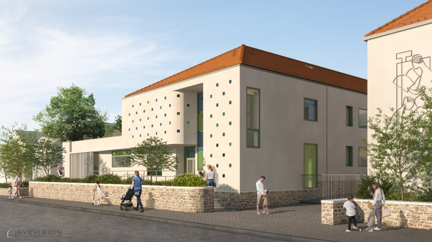 A gyerekek aktív szórakozását óvodai játszókert segíti. A tervezésnél fontos szempont volt, hogy a játszókert minél több eleménél a természetesség érvényesüljön. Az udvart izgalmassá teszi majd a többszintes támfalak kerti elemekké való alakítása és a térkoncepcióba való integrálása.