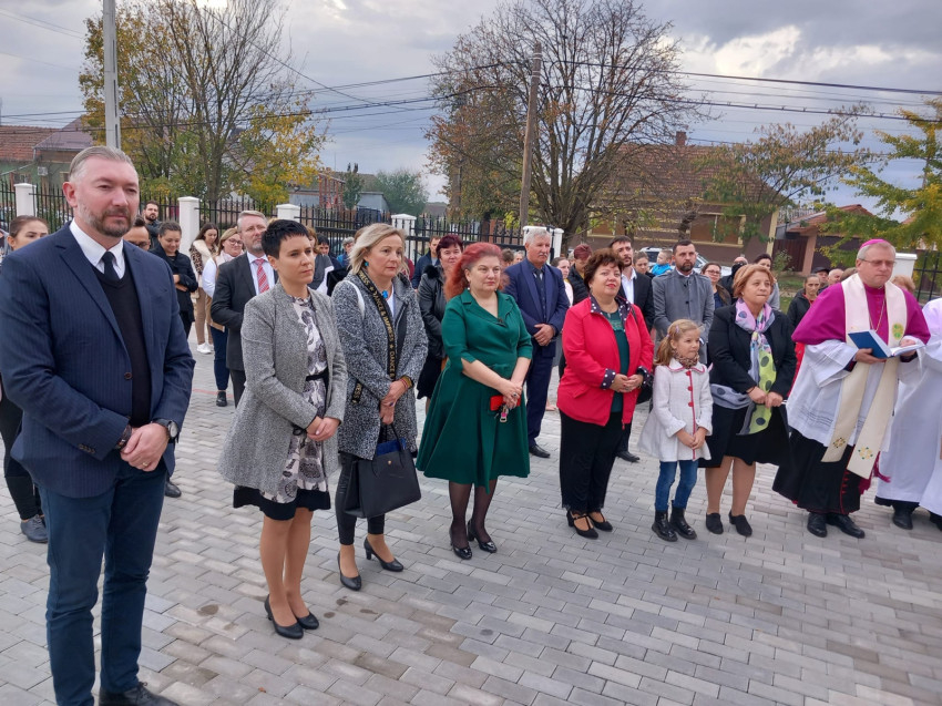 A megáldott bölcsőde időkapszuláját a plébános és Timar Sorin alpolgármester helyezte el.