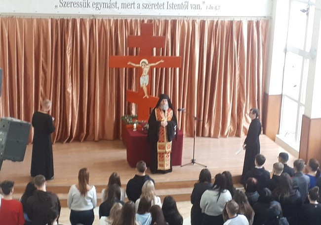 Az a fa, amely akkor megosztottságot okozott ember és Isten, illetve ember és ember között, most az egységet, a közösséget segíti egyesíteni. A kereszténység sok kultúrát hozott össze, és ez Jézus Krisztus áldozatának köszönhető – emlékeztetett Orosz Atanáz püspök. – Így kell tekinteni az ebben az iskolában felállított keresztre is és arra, akit értünk keresztül szúrtak, megkínoztak. Ez kovácsol minket még jobban eggyé, mert ennek a halálnak a vége a feltámadás. Úgy kell nézni erre a keresztre, mint életünk segítőjére, aki meg akar minket tartani ebben az ingoványos földi életben.