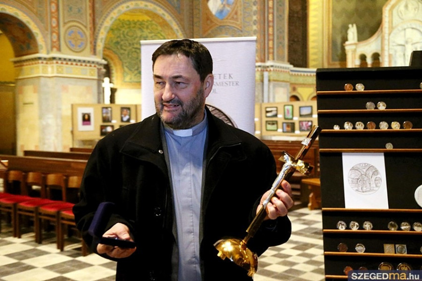„Új arculata lett a templomnak, s fontosnak éreztük, hogy ezt megörökítsük, legyen valami olyan, ami kézzel fogható módon emlékeztet erre” – indokolta az érem megalkotását Kondé Lajos, a dóm plébánosa. Emlékeztetett, építészeti bravúr volt a hatvantonnás baldachin áthelyezése a felújítás során. „Most már elvileg jó helyen van, az építkezés során praktikus okokból helyezték a korábbi pontba. Egy 1970-es években született szakvélemény is azt javasolta, hogy a baldachin a mostani helyére kerüljön át, ez végre megvalósult” – mondta.