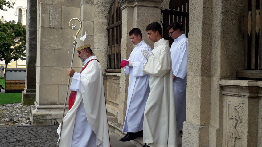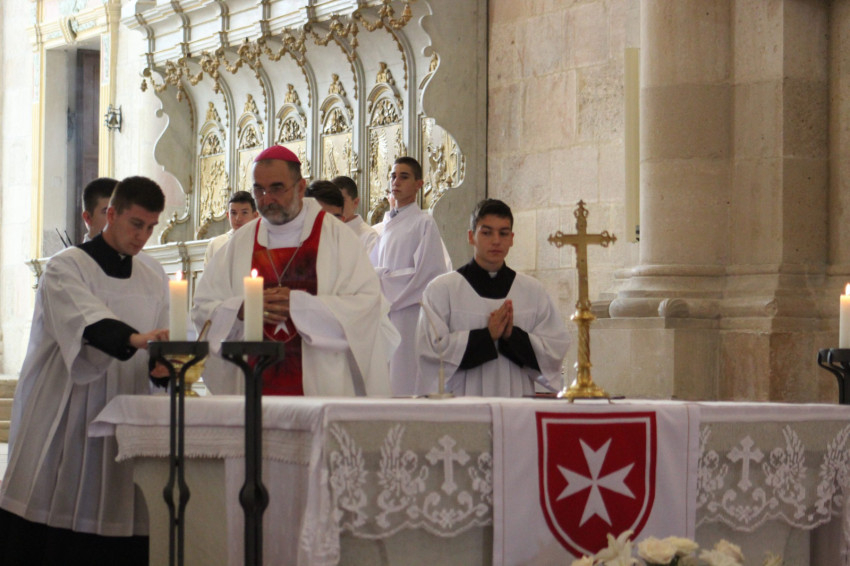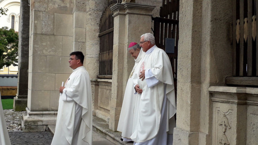 A máltai rend zászlaja alatt vonultak be az ünnepélyes szentmisére a lovagok; a koncelebráló papok – köztük Jakubinyi György nyugalmazott érsek, Marton József nagyprépost, András István szemináriumi rektor, Hurgoi János irodaigazgató, Farkas Ervin iskolaigazgató, Kovács Szabolcs érseki titkár, Papp Márton plébános, Popa Gabriel, a máltai lovagrend tagja, bukaresti érseki titkár és az asszisztencia.