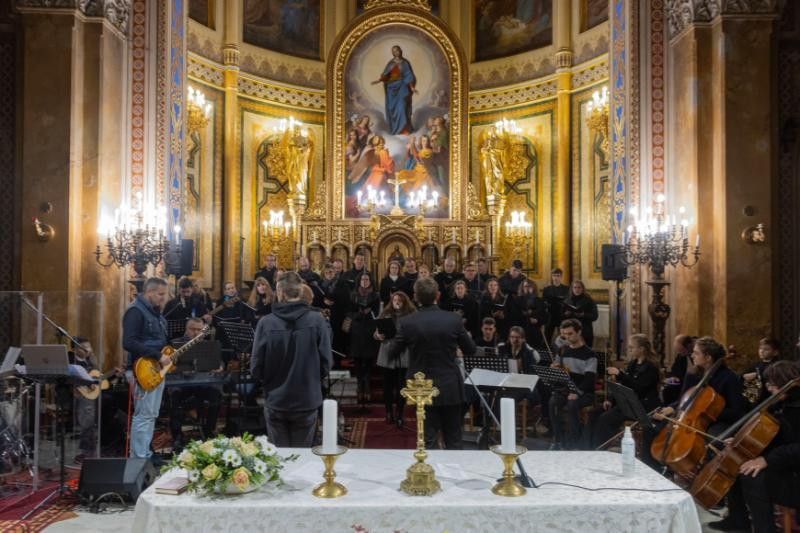 – Szimfonikus rockzenei stílusúként határozta meg az elkészült művet, és valóban: közreműködik egy szimfonikus zenekar, de dobot és szólógitárt is hallhatunk benne. Először a stílust képzelte el, amit szívesen hallana egy szentmisében, vagy jöttek a dalok, és hozták magukkal, hogy ebbe az irányba ment?