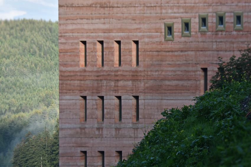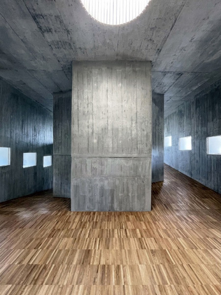 Érzékelési szempontból a belső tér a kontrasztok ellenőrzött feszültségére épít: masszív és finom, hideg és meleg, ipari és otthonos. Ez a dialektika, a jól kalibrált akusztikával együtt, támogatja az itt élő közösség összetartását, miközben az anyaghasználat és a geometria kortárs építészeti nyelvet kínál, de világos utalásokkal a régi korok építészeti és szimbolikus hagyományaira.