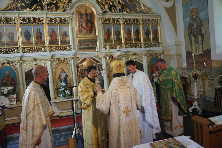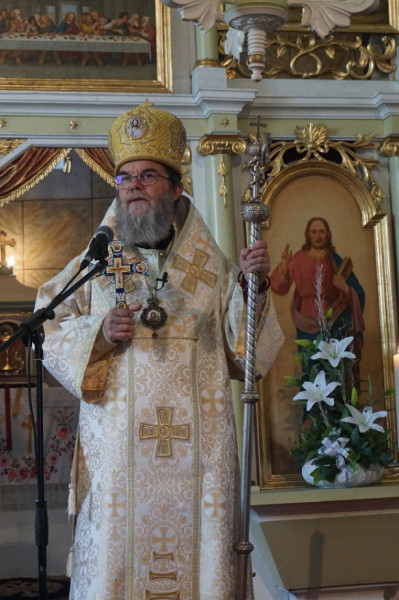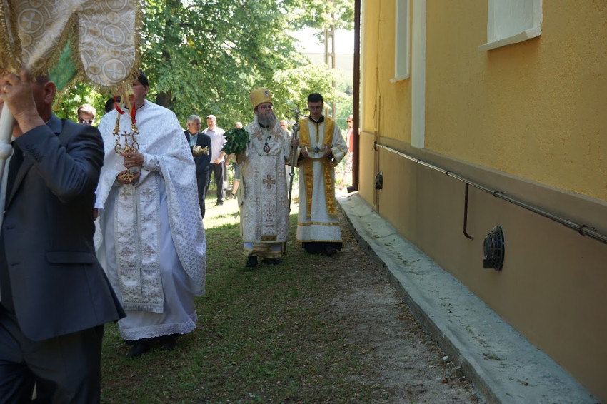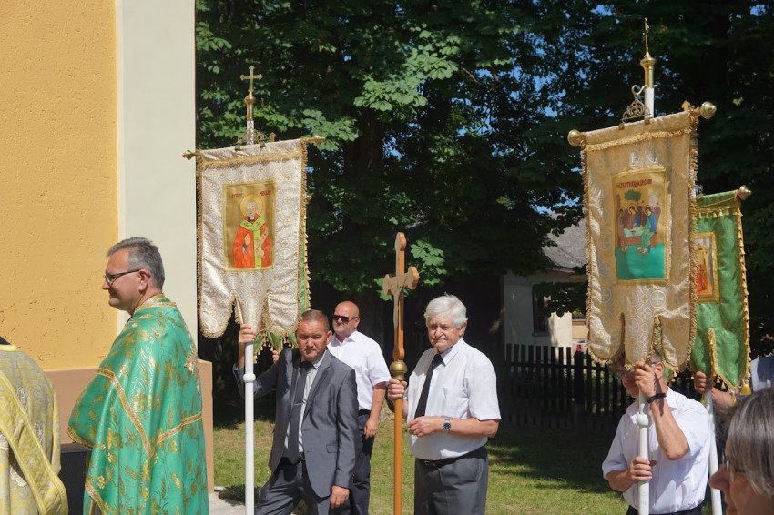 Az ünnepi liturgia a templom megszentelésének szertartásával kezdődött, majd a templom belsejét is szenteltvízzel hintette meg Orosz Atanáz püspök, mert az ikonosztázion boltívére két újabb festmény került. A falunak korábban nem volt címere, ezt és a régi magyar címert festették meg méltó helyre. Takács László polgármester az egész közösségnek és az innen elszármazottaknak is köszönetet mondott azért, hogy mindezek megvalósulhattak.