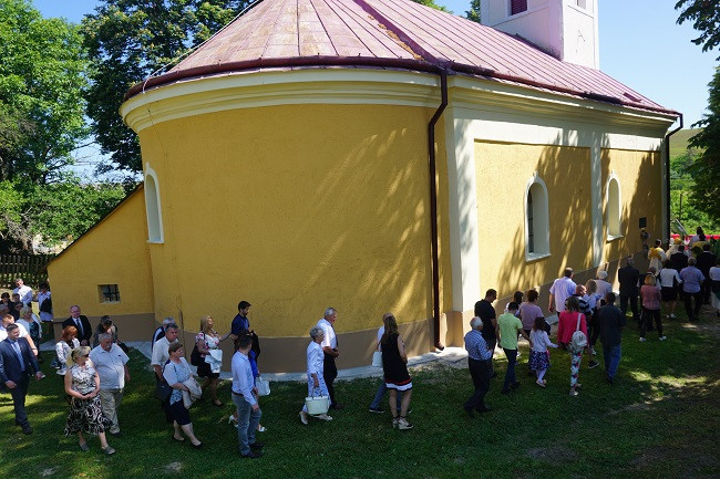 A helyi közösség összefogását egyházmegyei támogatás egészítette ki, így valósult meg a templom külsején a megrongálódott falrészek javítása.