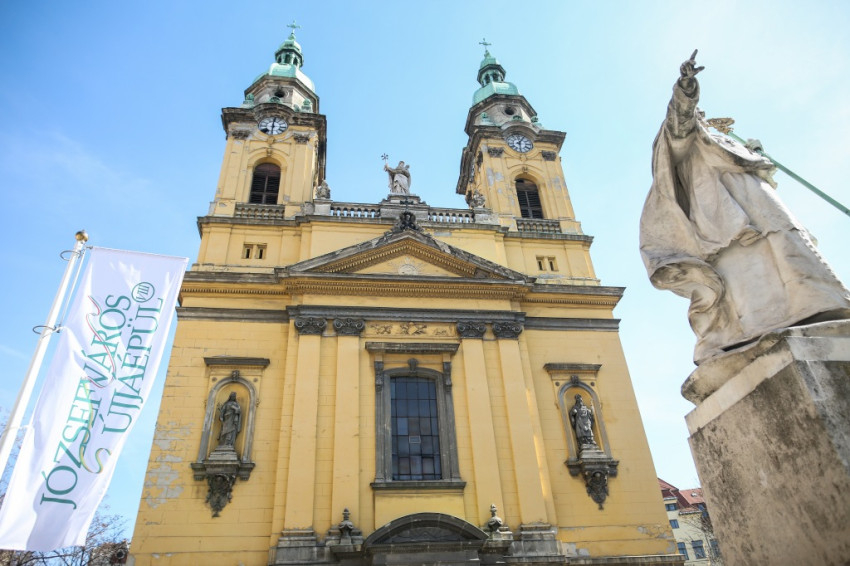 A józsefvárosi Szent József plébániát Batthyány József hercegprímás alapította 1777-ben. A templom alapkövét 1797-ben tették le, a monumentális épület a magyarországi klasszicizáló késő barokk építészet egyik legjelentősebb emléke. A Tallher József terve alapján készült templomot 1798-ban már használatba veszik. A tornyok 1810-ben készülnek el. Kasselik Fidél (1814), majd Barcza Elek (1891–95) az előzőleg klasszicista stílusú templomnak a millenniumra adja meg gazdag, neobarokk díszes öltözetét, mai alakját (900 m²).