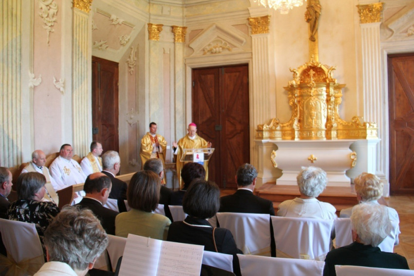 Az Esterházy-kastélyt 1945-től 1959-ig a szovjet hadsereg használta, sajnos ebben az időszakban az épületben jelentős károk keletkeztek. A kápolna szinte teljes berendezését a nyitott kazánokban tüzelték el, ennek füstje tönkretette a freskókat is. Amikor véget ért a háború, a kápolna megmaradt berendezése is eltűnt a liturgikus ruhákkal együtt. A tárgyak további sorsát nem ismerjük, amit tudunk, hogy a kápolna oltára a budapest-belvárosi Nagyboldogasszony-főplébánia-templomban van. Az oltár fölött lévő keresztet pedig a Szent István vértanú-templom Mária-kápolnájában őrizték meg – mondta el Mail József apátkanonok, plébános.