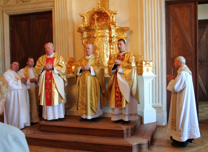 Az ünnepi szentmisén Márfi Gyula érsekkel közösen mutatta be a szentmisét Mail József apát, gazdasági helynök, pápai főesperes, Szijártó László kerületi esperes, pápa-tókerti plébános, Bali Tibor helyettes esperes, külsővati plébános, Salgó Ferenc, a Szent Anna-templom plébánosa és Rudi Péter bakonyjákói plébános.