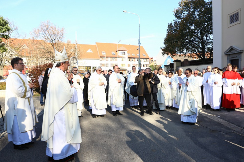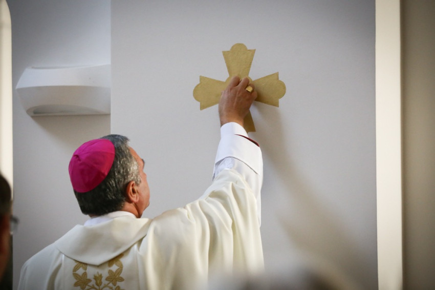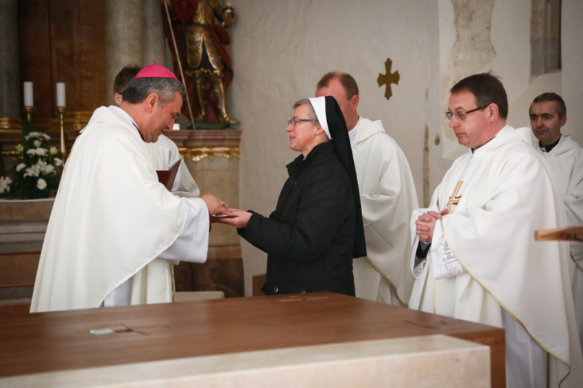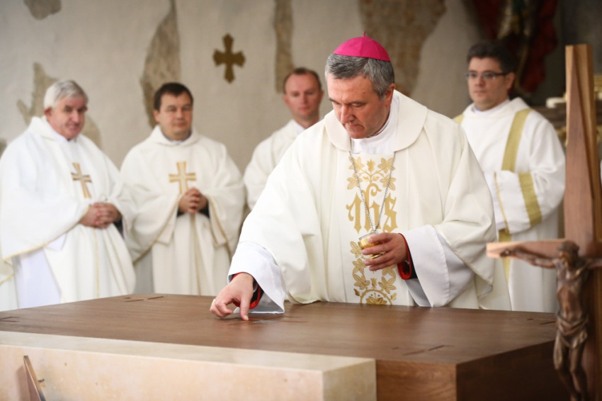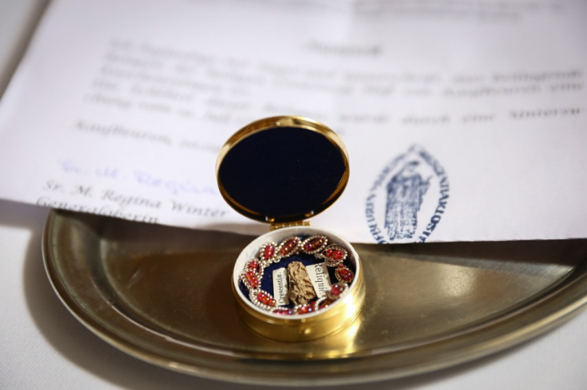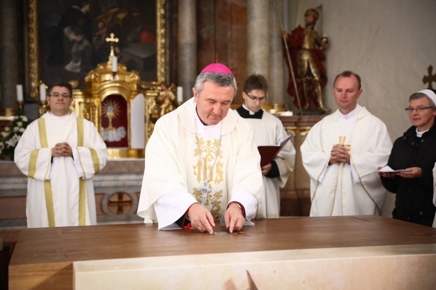 A szentbeszédet követően került sor a 17–18. században élt Szent Crescentia ereklyéjének elhelyezésére az új szembemiséző oltárban. A csontereklye a ferences nővérek – Szombathely testvérvárosában, a bajorországi Kaufbeurenben működő – Szent Crescentia-kolostorának adománya. Ezután Veres András megszentelte az új oltárt, és újraszentelte a felújított templomot.