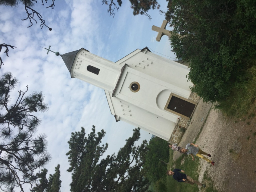 A Kovács Zoltán plébános vezette közel ötvenfős angyalföldi csoport – számos kisgyermekes család és fiatalok részvételével – először a vonyarcvashegyi Szent Mihály-dombot mászta meg, gyönyörködött a balatoni panorámában, és kérte az ott épült kápolnánál a mennyei seregek vezérének oltalmát mindennapos küzdelmeiben.