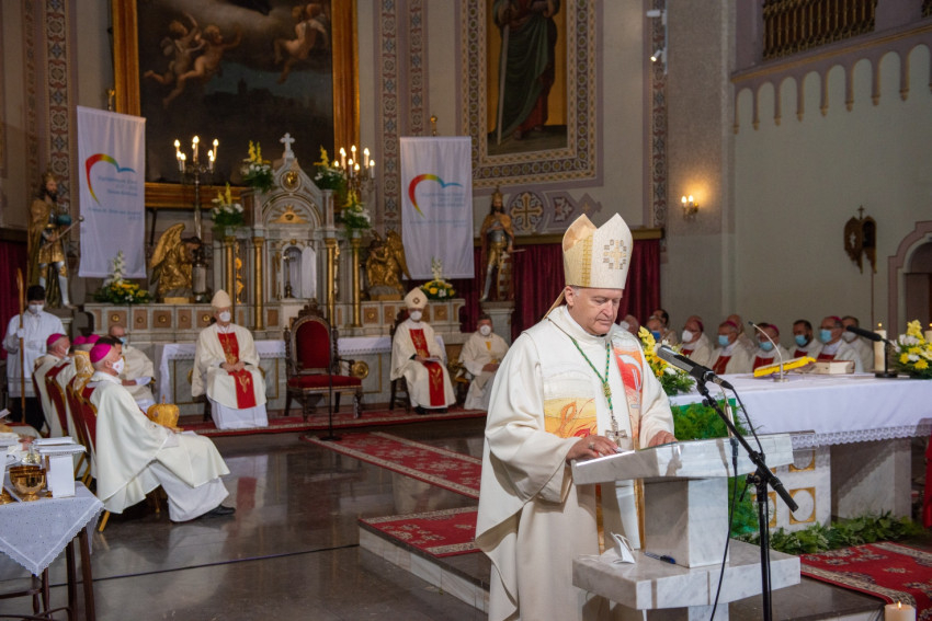 Lehet, hogy nehéz volt a munka, de ma itt vagyunk, mint a tanítványok a mai evangéliumban, mert Jézus idehívott minket, nem egy hegyre, mert hát ez a székesegyház csak 83 méter magason van a tengerszint felett. Jézus hívott minket össze Szentlelke tevékenysége által, hogy hálát mondjunk az Atyának ezért a zsinati folyamatért. Ez jön Bánátból!