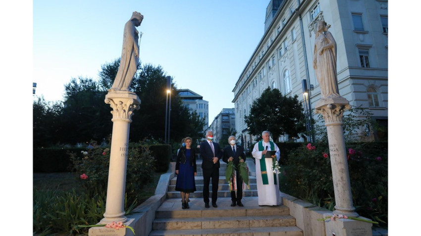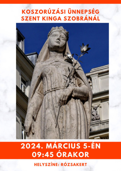 Körülbelül 19.30 órakor a templom melletti Rózsakertben koszorúzási ünnepség kezdődik Szent Kinga és Szent Hedvig szobránál.