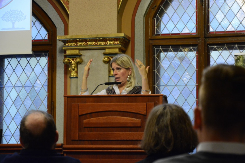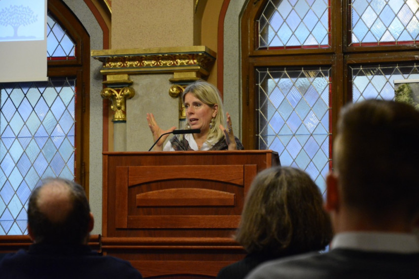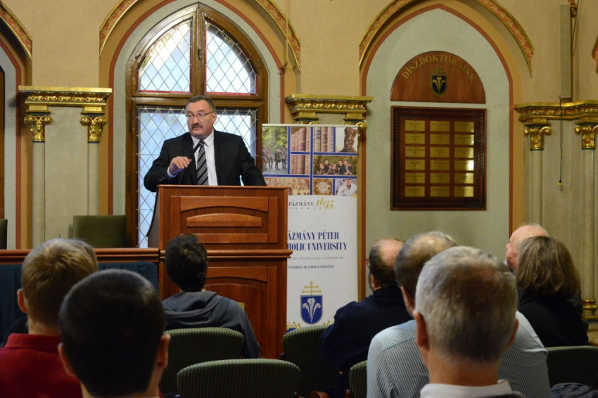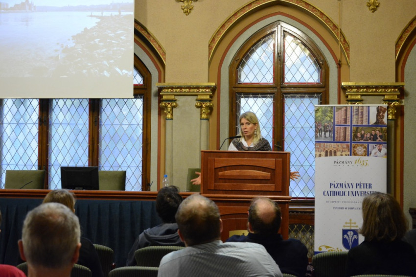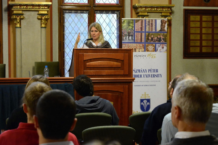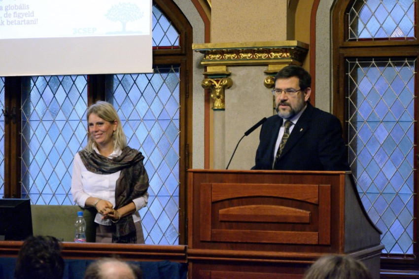 Ürge-Vorsatz Diána fizikus, klímakutató, az ENSZ Éghajlatváltozási Kormányközi Testület (IPCC) mérsékléssel foglalkozó munkacsoportjának alelnöke, egyben a CEU Éghajlatváltozási és Fenntartható Energiapolitikai Központjának (3CSEP) igazgatója, megosztott Nobel-békedíj részese, hét gyermek édesanyja. Az előadót Szabó István, a JÁK dékánja köszöntötte.