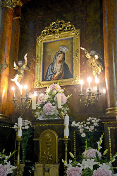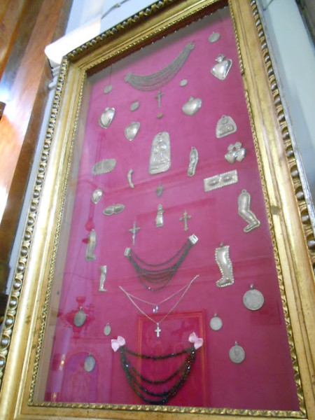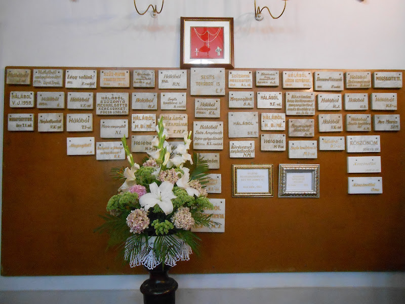 A kegyoltáron számtalan ezüst fogadalmi ékszer és hálatáblák sokasága jelzi a csodás fizikai és lelki gyógyulások emlékét.