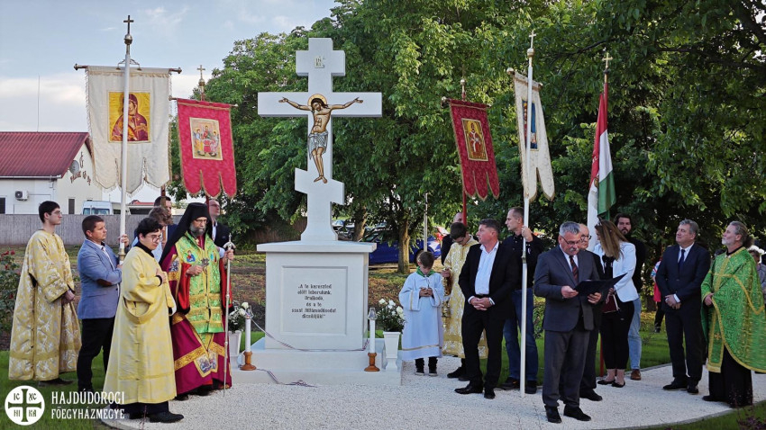 Kocsis Fülöp metropolita a szentelés időpontját pünkösdhétfőre tűzte ki, ekkorra a kereszt és a környezete is szépen elkészült. Az ünnepi esemény vecsernyével kezdődött az Istenszülő elszenderedése templomban, melynek végén Kocsis Fülöp beszédében rávilágított, hogy miért is állítunk keresztet: