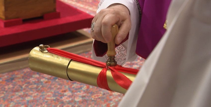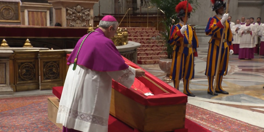 A dokumentumot fémhengerbe tették, azt pedig szalaggal átkötötték, a pápai szertartások hivatalának pecsétjével lepecsételték, és a koporsóba helyezték.