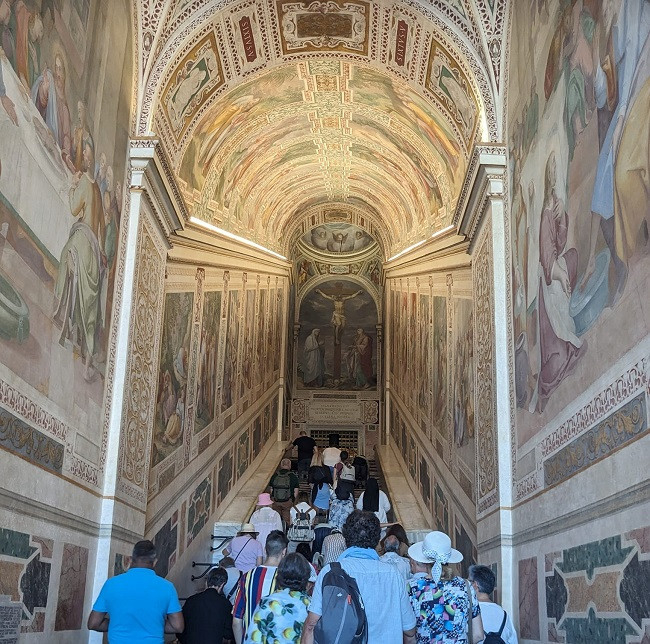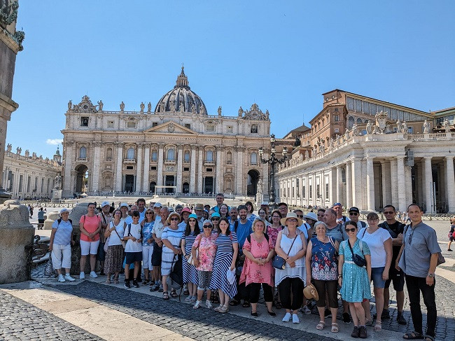 A keddi nap várakozásokkal telten szálltunk fel a buszra: irány Róma. Kora délután várt minket az első csoda: a falakon kívüli Szent Pál-bazilikába érkeztünk. Tekintetünk végighaladt a pápák arcképcsarnokán, és örömmel láttuk, hogy Ferenc pápa után még mindig található szabad hely (egy legenda szerint ugyanis, ha az utolsó kis fülkébe is bekerül egy pápa képe, akkor jön el a világvége (persze megnyugtattak minket, hogy ha tényleg elfogynak a helyek, egyszerűen elkezdenek egy újabb sort). Ezután Róma tengerpartján, Ostián frissítettük fel magunkat a tengerben, a fürdés után pedig elfoglalhattuk belvárosi szállásunkat Rómában.