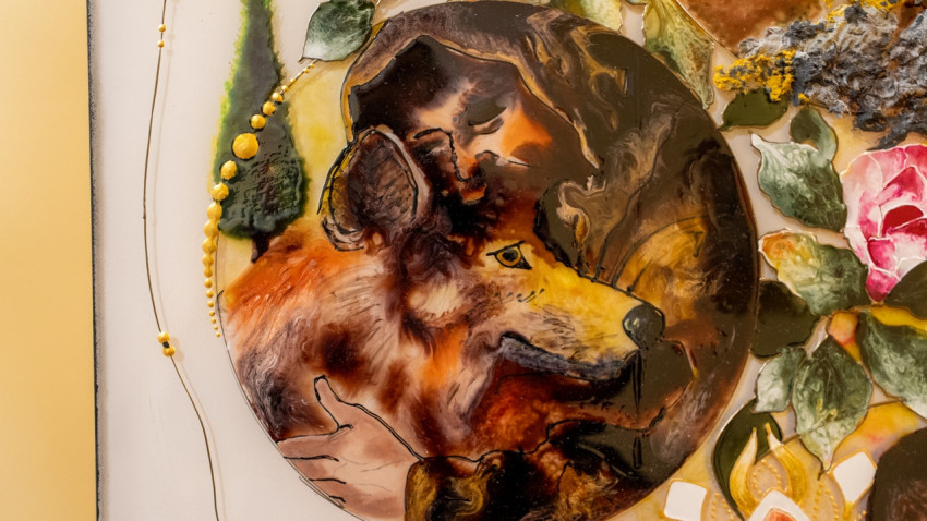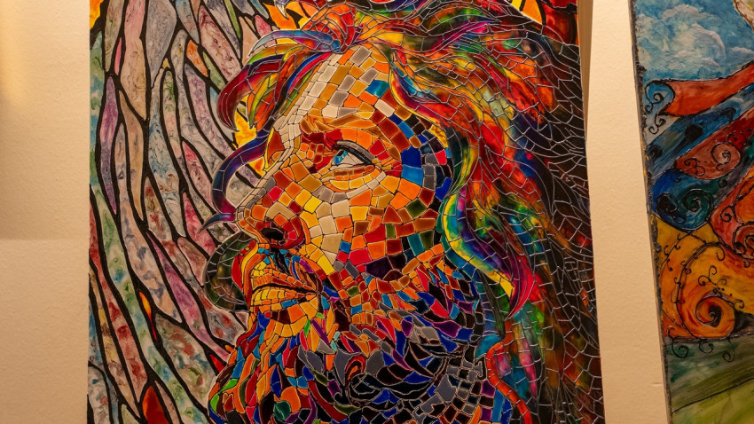 Valóban minden alkotás ragyog. A kiállítás megnyitóján a beáradó napfény e modern technikát még élénkebbé, varázslatosabbá tette.